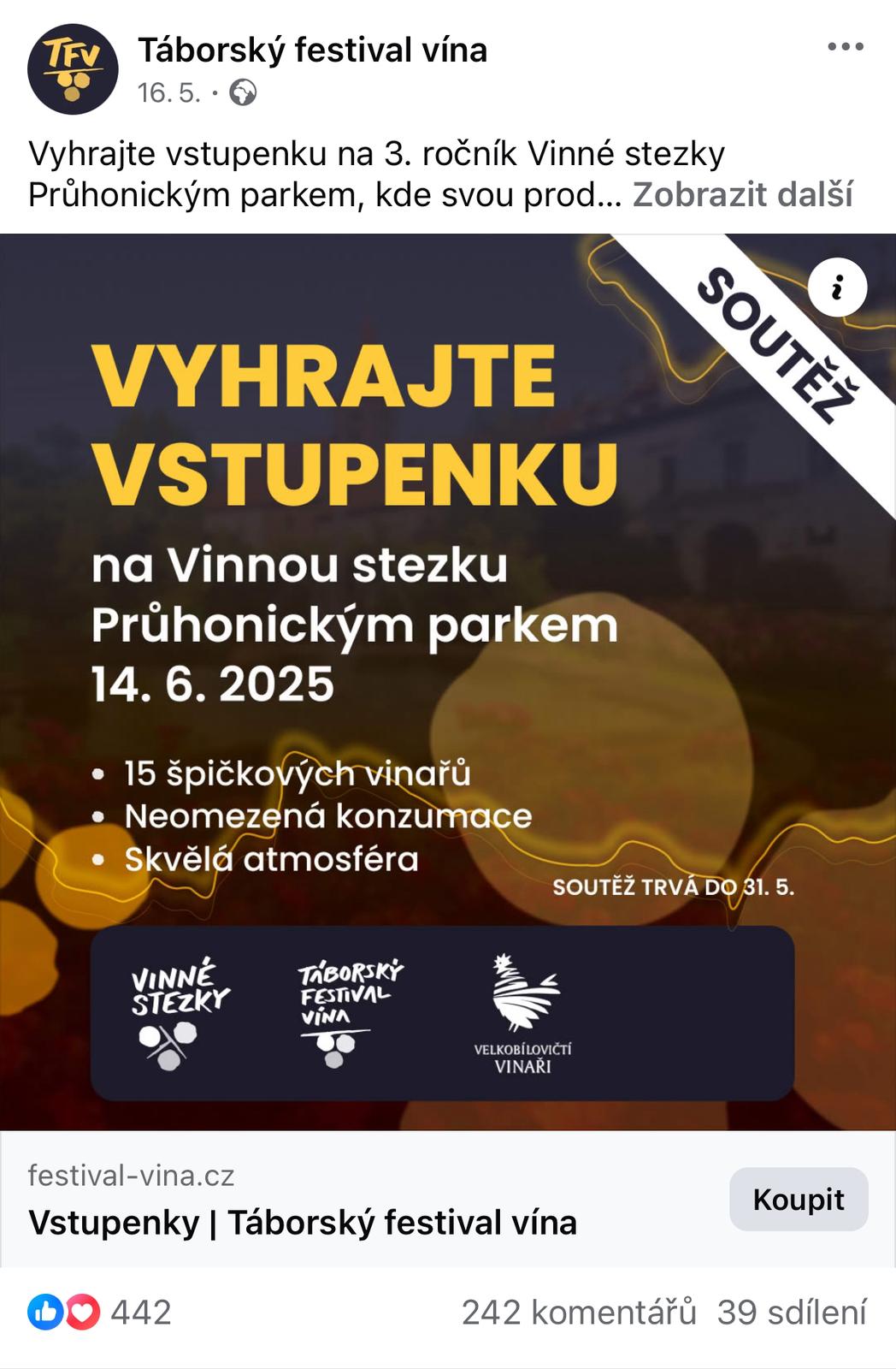 Výbornou odezvu měla například naše soutěž o lístky na Vinnou stezku Průhonickým parkem 2025, do které se zapojilo přes 200 uživatelů.
